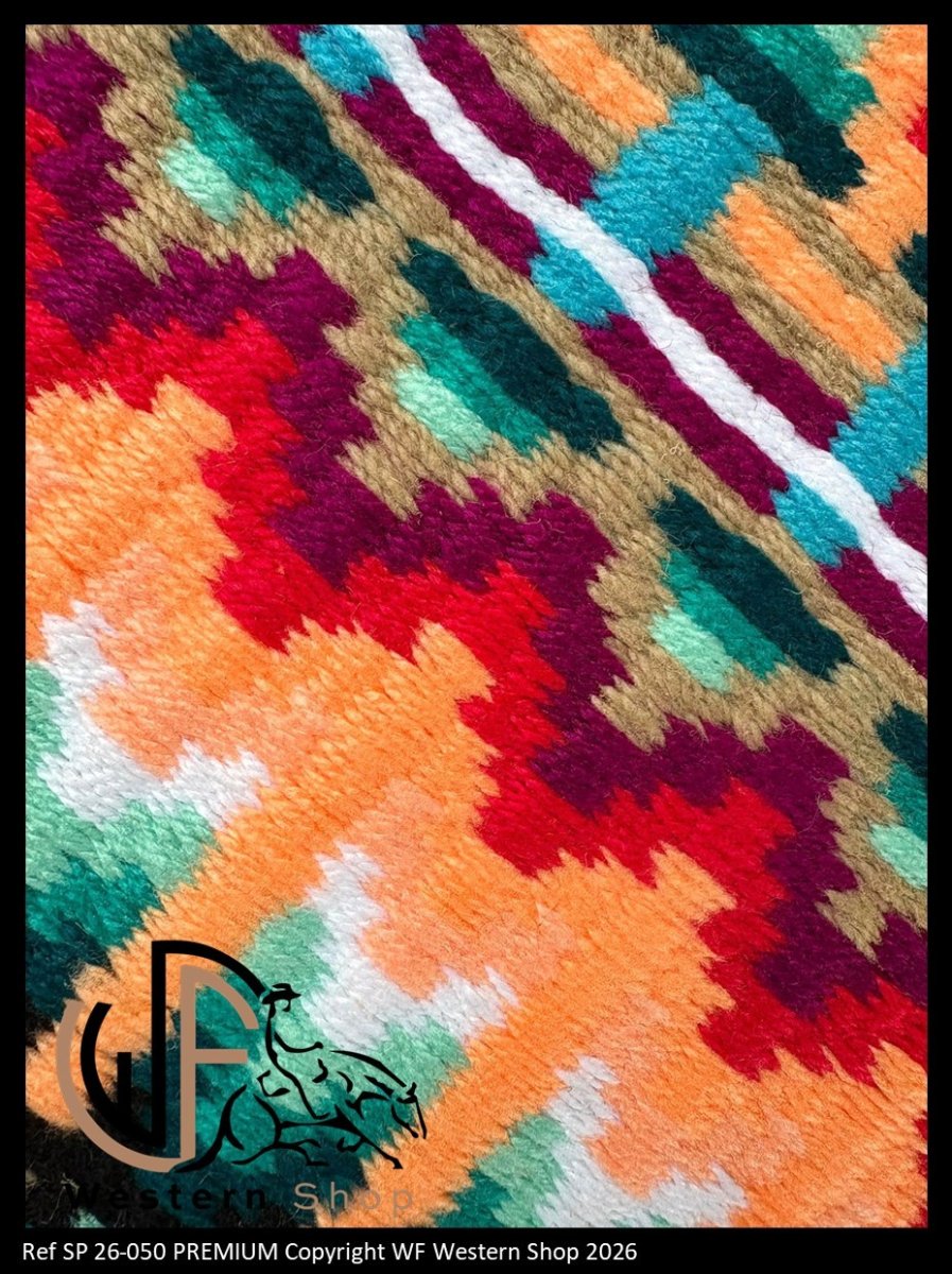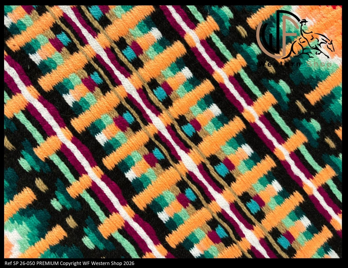 Show Pad 34″ x 40″ oversized (86 cm x 100 cm) Laine 100 % naturelle New Zelande qualité Vardhman/Mayatex. Densité : 7 lbs (3180 gr) Entièrement tissés à la main. Se combine parfaitement avec nos pads d’entrainement Standard Mérinos ou Training Pad 2.0 déclinés en épaisseur 1/2” ou Anatomic Néoprène Pad en épaisseur 1/2″ ou 3/4″